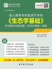 本书特别适用于参加成人高考的考生。本书严格遵循“《成人高考考试大纲》”的要求编写,共分为6章,每章由两部分组成:第一部分为考点精讲,总结本章的重难点内容,帮助学员强化练习;第二部分为典型习题(含历年真题)及详解,精选详析了成人高考专科起点升本科《生态学基础》考试近年的考试真题,并针对该教材的重难点相应整理了典型题。